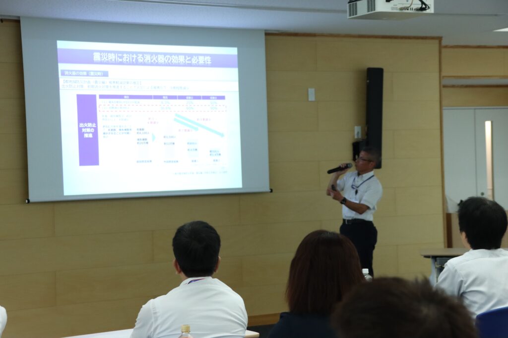 参加者からは「学生を守る立場として、日頃からの備えを見直すきっかけとなった」といった感想が寄せられるなど、参加者一同熱心に聴講し防災意識を高めました。