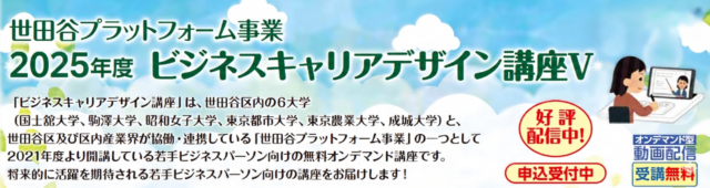 世田谷PF事業 無料オンデマンド講座配信中!【2025年度 世田谷プラットフォーム事業 ビジネスキャリアデザイン講座Ⅴ】のお知らせ
